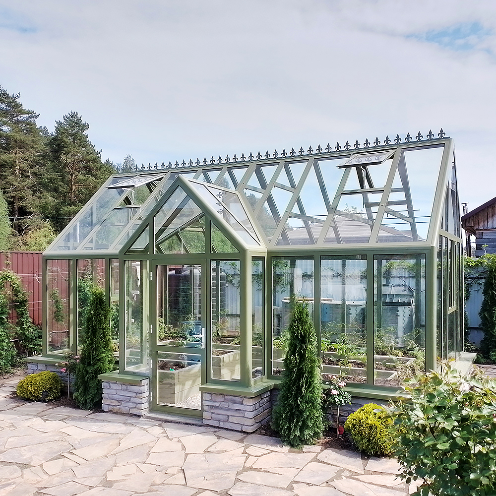 Английская теплица АСТЕРА Т-образной формы с тамбуром – это изысканное и функциональное решение для садоводов, ценящих красоту и урожайность. Сочетание классического дизайна и современных технологий позволяет создать идеальные условия для выращивания широкого спектра растений, от ранней рассады до экзотических культур. Размеры этой теплицы могут варьироваться в пределах ваших требований с учетом особенностей конструкции. Алюминиевый профиль 3 мм, стекло CLEAR FLOAT 5 мм.